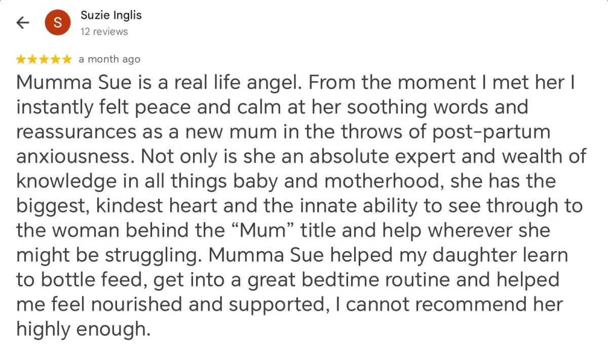 From in-home visits and overnight newborn support to feeding guidance, emotional wellness sessions, and prenatal preparation, Mumma Sue offers gentle, personalised care for both expecting and new mums. Whether it’s your first baby or your fourth, you’ll be met with calm presence, clinical expertise, and genuine compassion — right where you need it most.